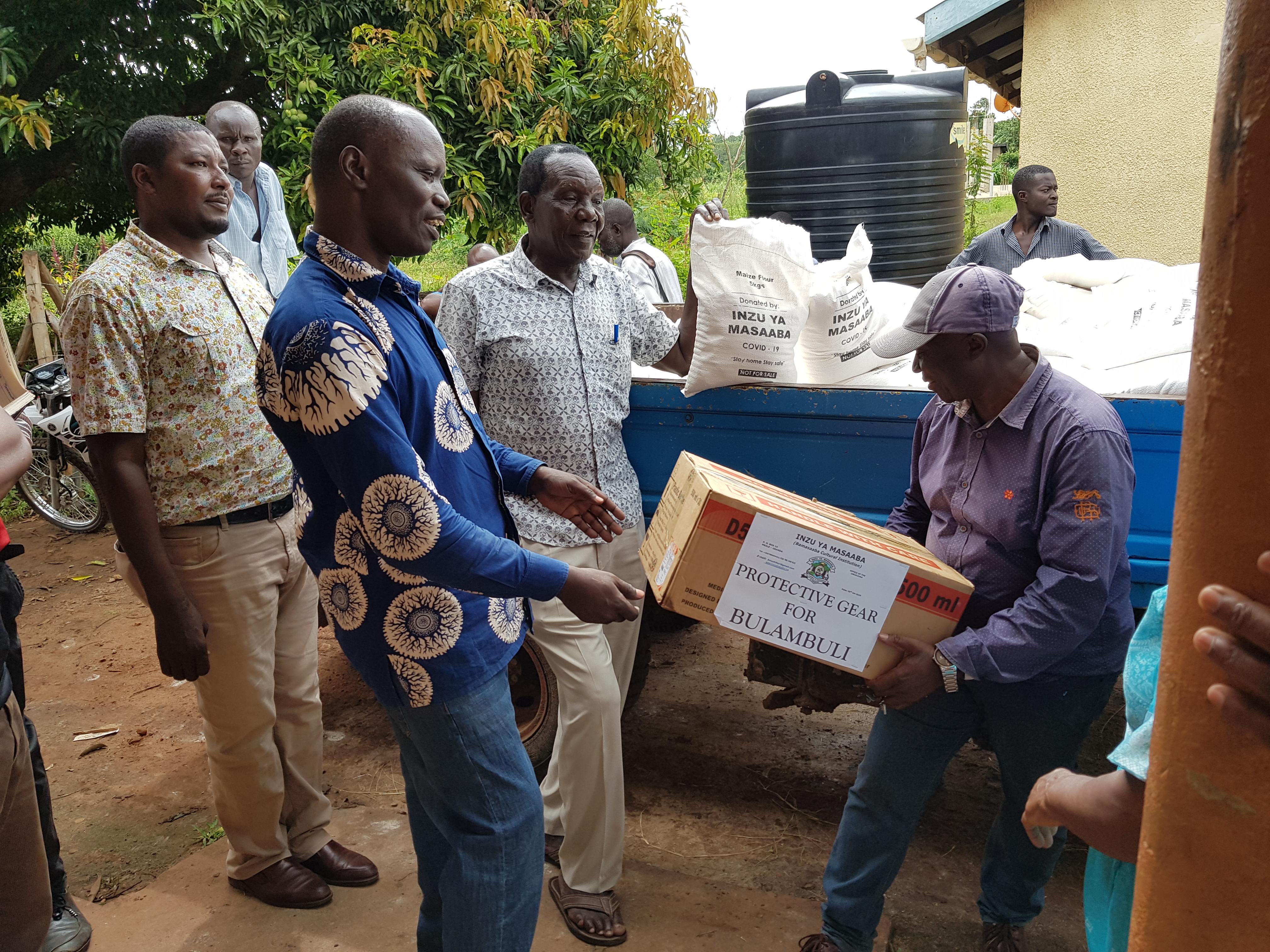 A team from Inzu ya Masaba Led by Mr Watulatsu Sam the Deputy Prime minister earlier today donated Protective gears and Two tones of posho to the children of the soil to help in the fight against covid19.